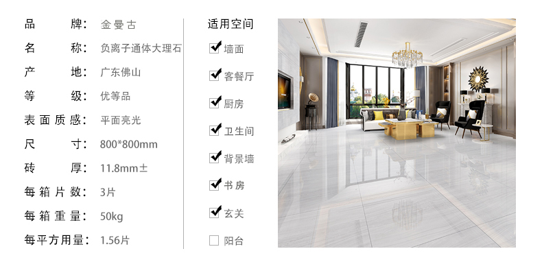 金曼古負(fù)離子瓷磚,能持續(xù)產(chǎn)生負(fù)離子,提高居室內(nèi)空氣負(fù)離子濃度,改善室內(nèi)空氣質(zhì)量,提升人體健康水平。負(fù)離子被稱為空氣維生素,負(fù)離子瓷磚創(chuàng)造安全健康的空間環(huán)境。工程用磚全拋釉地磚、通體大理石瓷磚、金剛石地磚等支持加工定做家裝瓷磚批發(fā)。