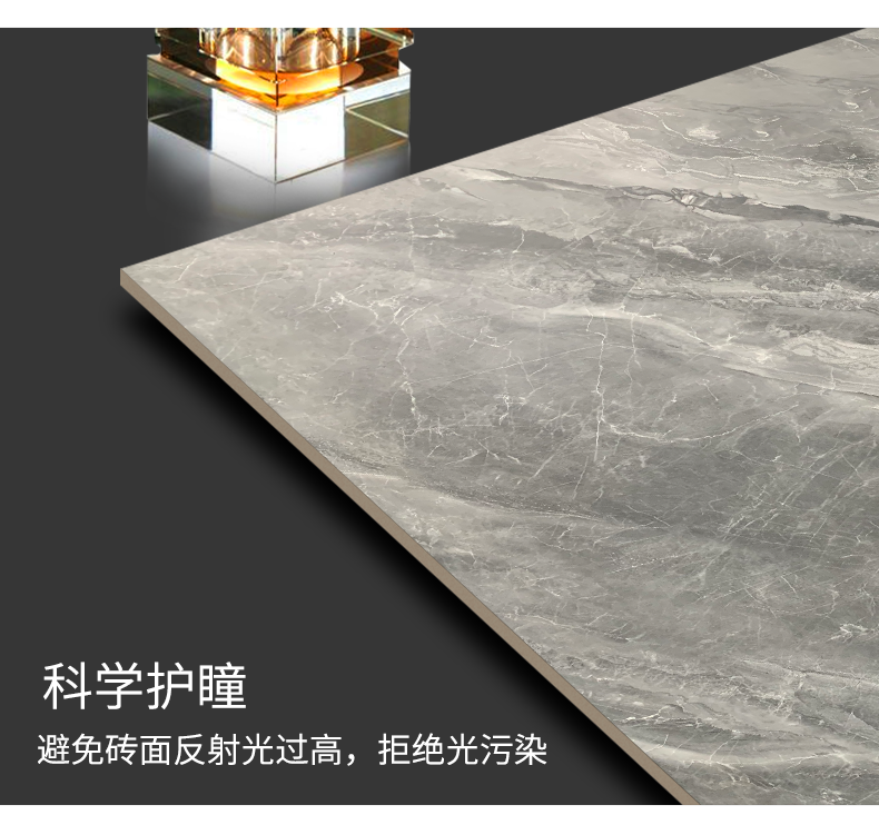 柔光瓷磚是磚面反射介于強光與弱光之間的一類瓷磚,其結合亮光類瓷磚的高調明艷裝飾和啞光類瓷磚的低調內斂搭配效果,通過動態柔光蠟拋技術,降低產品反光率,從而達到人體舒適的視覺感受以及無光污染的空間裝飾效果。優點:1.視覺舒適,無光污染 2.堅固耐磨,不易刮花.