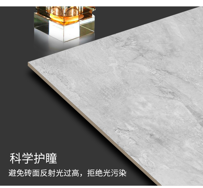 柔光瓷磚是磚面反射介于強(qiáng)光與弱光之間的一類瓷磚,其結(jié)合亮光類瓷磚的高調(diào)明艷裝飾和啞光類瓷磚的低調(diào)內(nèi)斂搭配效果,通過動態(tài)柔光蠟拋技術(shù),降低產(chǎn)品反光率,從而達(dá)到人體舒適的視覺感受以及無光污染的空間裝飾效果。優(yōu)點(diǎn):1.視覺舒適,無光污染 2.堅(jiān)固耐磨,不易刮花.