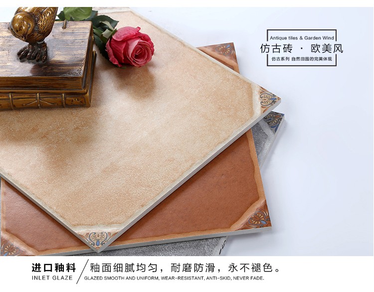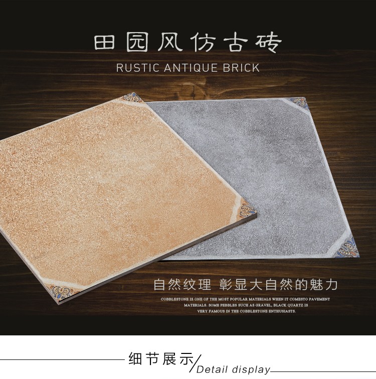 金曼古仿古地磚,采用國際先進(jìn)的超大型壓機(jī)自動(dòng)成型,經(jīng)世界一流的滾筒印花和高溫煅燒而成,通過仿石、仿巖、仿木、仿布、仿金屬等多種表現(xiàn)方式,產(chǎn)品花色圖案新穎時(shí)尚,領(lǐng)先國際潮流,具有超耐磨、防滑、防污等高性能指標(biāo)。