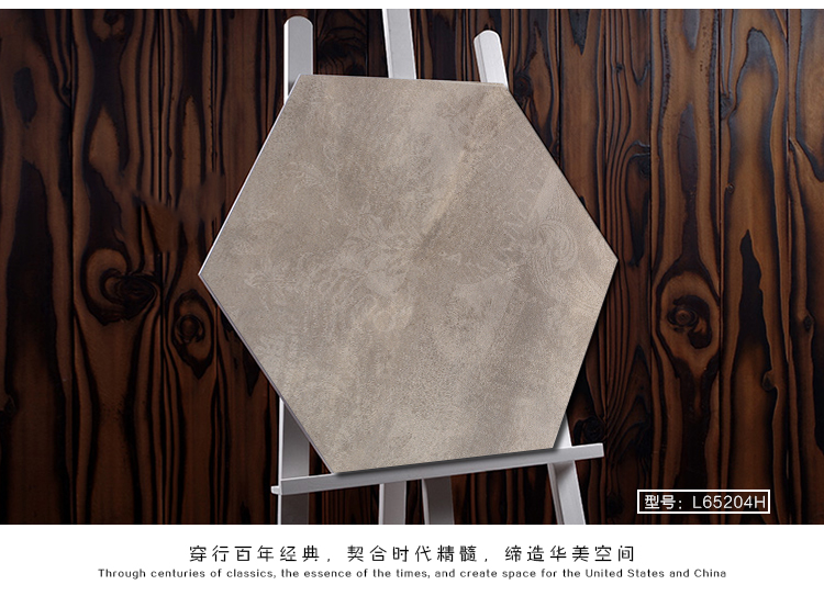 金曼古瓷磚廠家六角磚是一種表面呈現木紋裝飾圖案的環保建材.紋路逼真、自然樸實、沒有木地板褪色、不耐磨等缺點;曼古陶瓷木紋磚系列線條明快,圖案清晰為特色。本身具有阻燃,不腐蝕的特點,綠色、環保型建材;產品使用壽命長,耐磨,無需像木制產品那樣周期性地打蠟保養等。