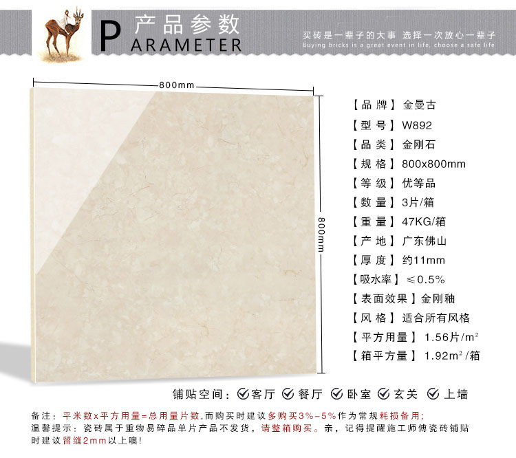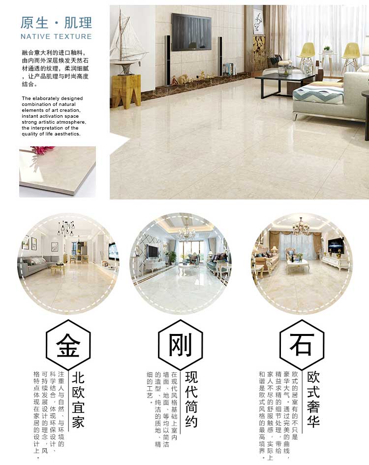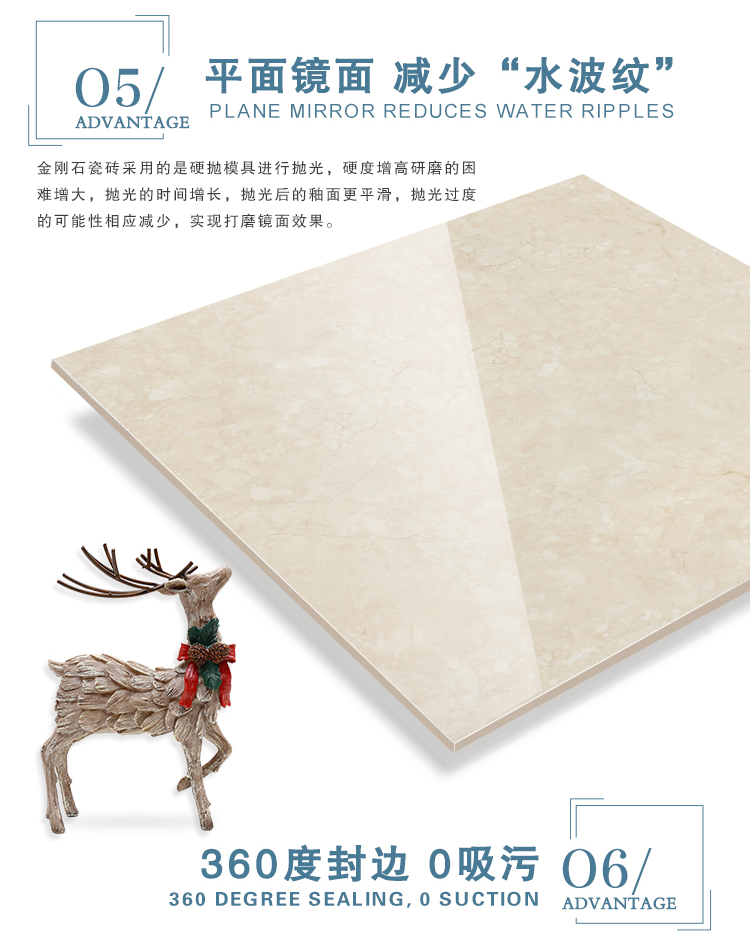 金曼古瓷磚廠家特價金剛石因高品質(zhì)而得名,是一款極具天然石材效果和微晶石質(zhì)感的仿石材瓷磚,它不但在價格、環(huán)保、耐用和清潔上極具優(yōu)勢,在質(zhì)感、規(guī)格、花色、重量等指標(biāo)上,金剛石都遠(yuǎn)遠(yuǎn)勝于石材、拋光磚。相比其他種類的產(chǎn)品,它最大的特點(diǎn)可以用“高亮度、高耐磨、高平整、高逼真、高清晰、高環(huán)保”。