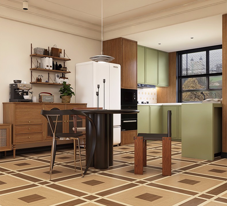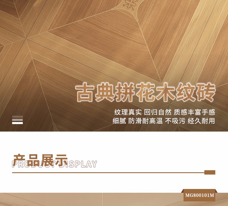 金曼古木紋磚,采用國際先進的超大型壓機自動成型,經世界一流的滾筒印花和高溫煅燒而成,產品花色圖案新穎時尚,具有超耐磨、防滑、防污等高性能指標。