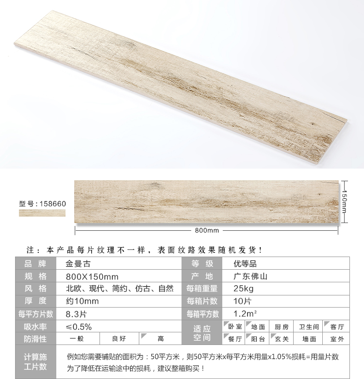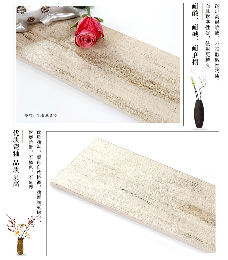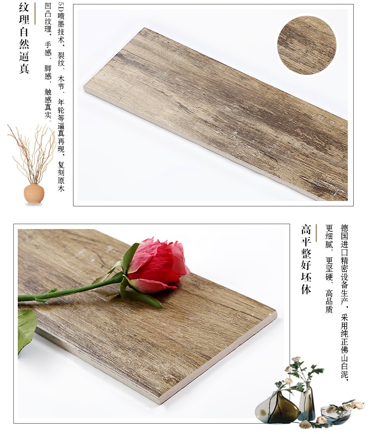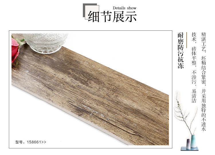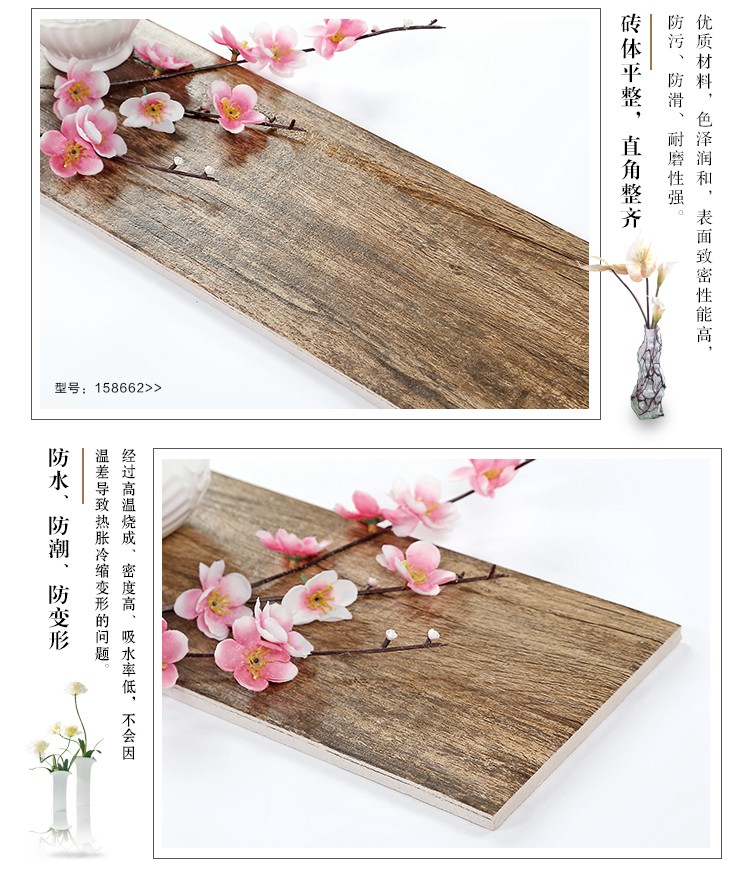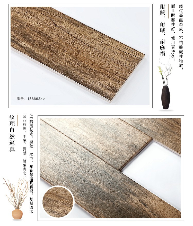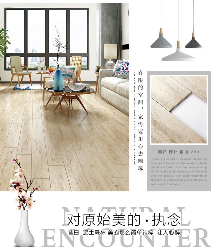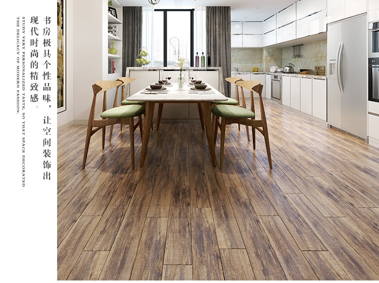 金曼古木紋磚,是一種表面呈現木紋裝飾圖案的環保建材.紋路逼真、自然樸實、沒有木地板褪色、不耐磨等缺點;曼古陶瓷木紋磚系列線條明快,圖案清晰為特色。本身具有阻燃,不腐蝕的特點,綠色、環保型建材;產品使用壽命長,耐磨,無需像木制產品那樣周期性地打蠟保養等.
