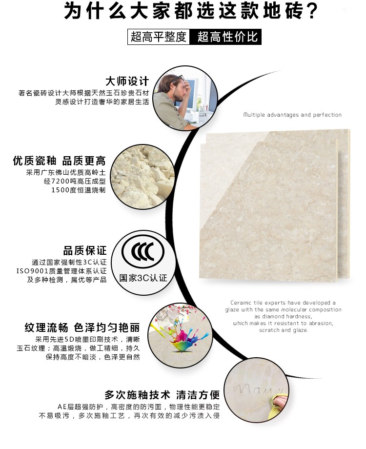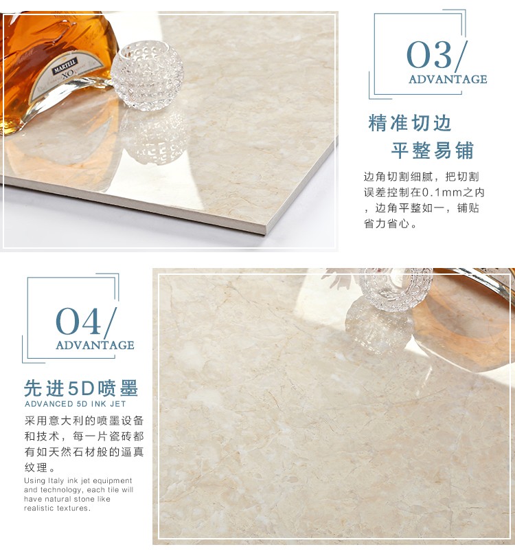 金曼古瓷磚廠家特價金剛石因高品質而得名,是一款極具天然石材效果和微晶石質感的仿石材瓷磚,它不但在價格、環保、耐用和清潔上極具優勢,在質感、規格、花色、重量等指標上,金剛石都遠遠勝于石材、拋光磚。相比其他種類的產品,它最大的特點可以用“高亮度、高耐磨、高平整、高逼真、高清晰、高環保”。