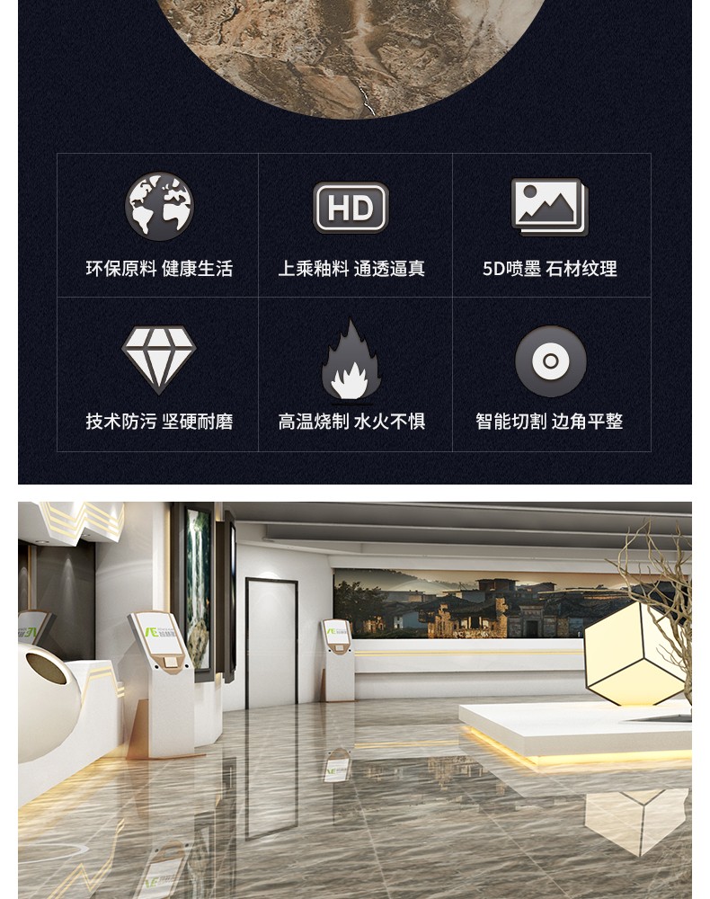 通體大理石瓷磚,即是大理石瓷磚的一種,亦是一種拋釉磚坯經過拋光工序之后形成的瓷磚,只不過通體大理石瓷磚更加注重對瓷磚磚坯的塑造,其原本原理也是在大理石瓷磚基礎上,加類似于瓷磚表面紋理的磚坯組合而成的瓷磚產品。另外,現階段各種傳統單純釉面的大理石瓷磚產品已經開始泛濫,而通體大理石瓷磚的出現無疑又是給已經乏力的大理石瓷磚市場注入新的活力.應用廣,市場大.
