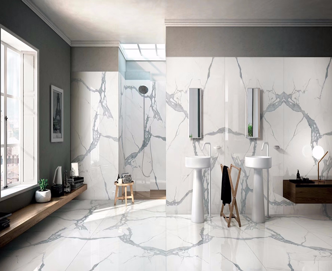 大規格瓷磚(5-JH241202)-工程瓷磚 金曼古大規格瓷磚引進世界最先進的超大型壓機自動壓制而成,具有超大規格,超高硬度,超高致密度,超長時間煅燒,超低吸水率,超高光澤度。其磚面紋理流暢自然,效果逼真,適用于大型工程外墻干掛和酒店、商場、各辦公樓大堂等地面裝修