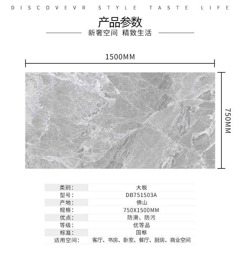 大規格瓷磚(DB751503A)-工程瓷磚 金曼古大規格瓷磚引進世界最先進的超大型壓機自動壓制而成,具有超大規格,超高硬度,超高致密度,超長時間煅燒,超低吸水率,超高光澤度。其磚面紋理流暢自然,效果逼真,適用于大型工程外墻干掛和酒店、商場、各辦公樓大堂等地面裝修