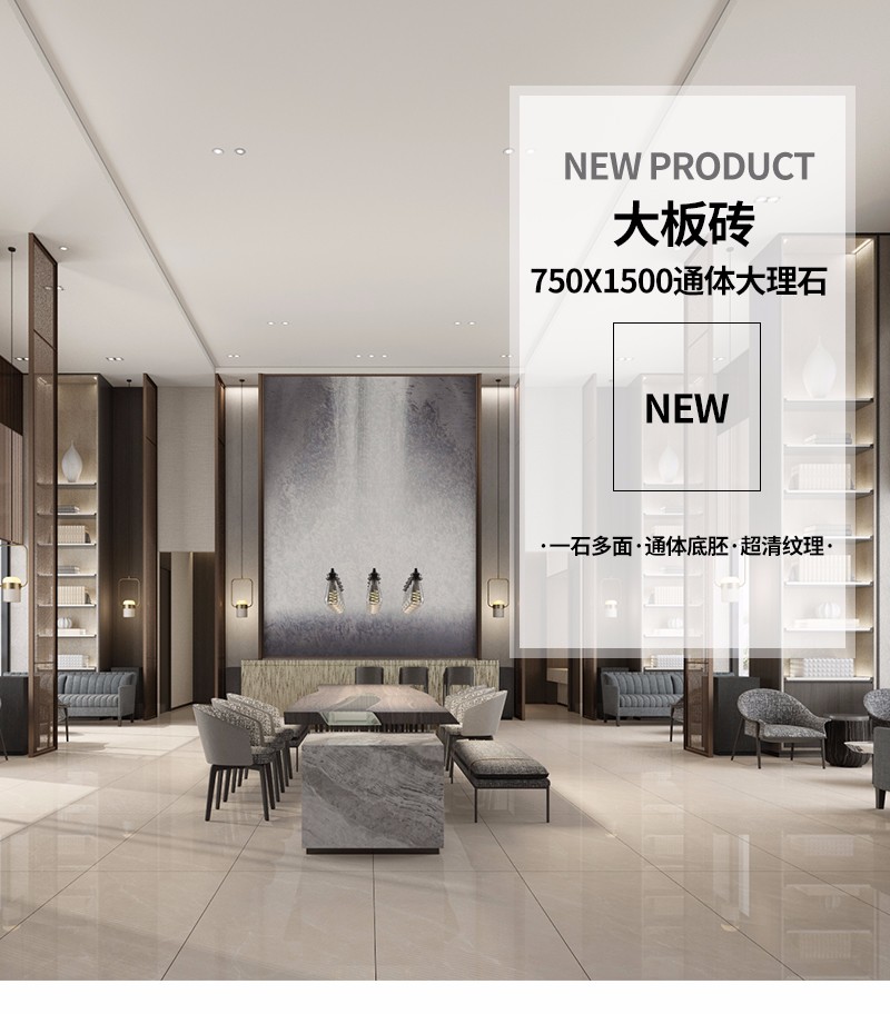 大規(guī)格瓷磚(DB751506A)-工程瓷磚 金曼古大規(guī)格瓷磚引進世界最先進的超大型壓機自動壓制而成,具有超大規(guī)格,超高硬度,超高致密度,超長時間煅燒,超低吸水率,超高光澤度。其磚面紋理流暢自然,效果逼真,適用于大型工程外墻干掛和酒店、商場、各辦公樓大堂等地面裝修