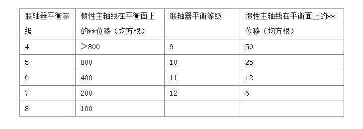 聯(lián)軸器平衡等級 慣性主軸線在平衡面上的**位移(均方根) 聯(lián)軸器平衡等級 慣性主軸線在平衡面上的**位移(均方根)