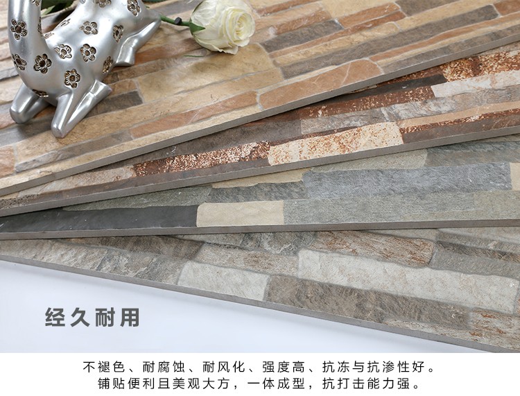 金曼古墻磚,適用于洗手間、廚房、室外陽(yáng)臺(tái)的立面裝飾,是保護(hù)墻面免遭水濺的有效途徑。它們不僅用于墻面,用在門(mén)窗的邊緣裝飾上,也是一種有趣的裝飾元素。用于踢腳線(xiàn)處的裝飾墻磚,既美觀又保護(hù)墻基不易被鞋或桌椅凳腳弄臟。